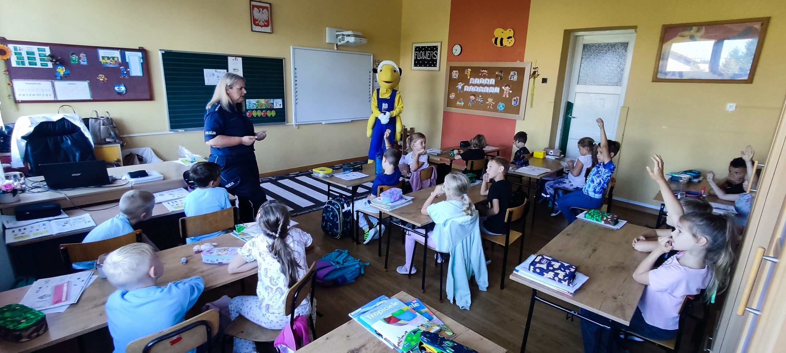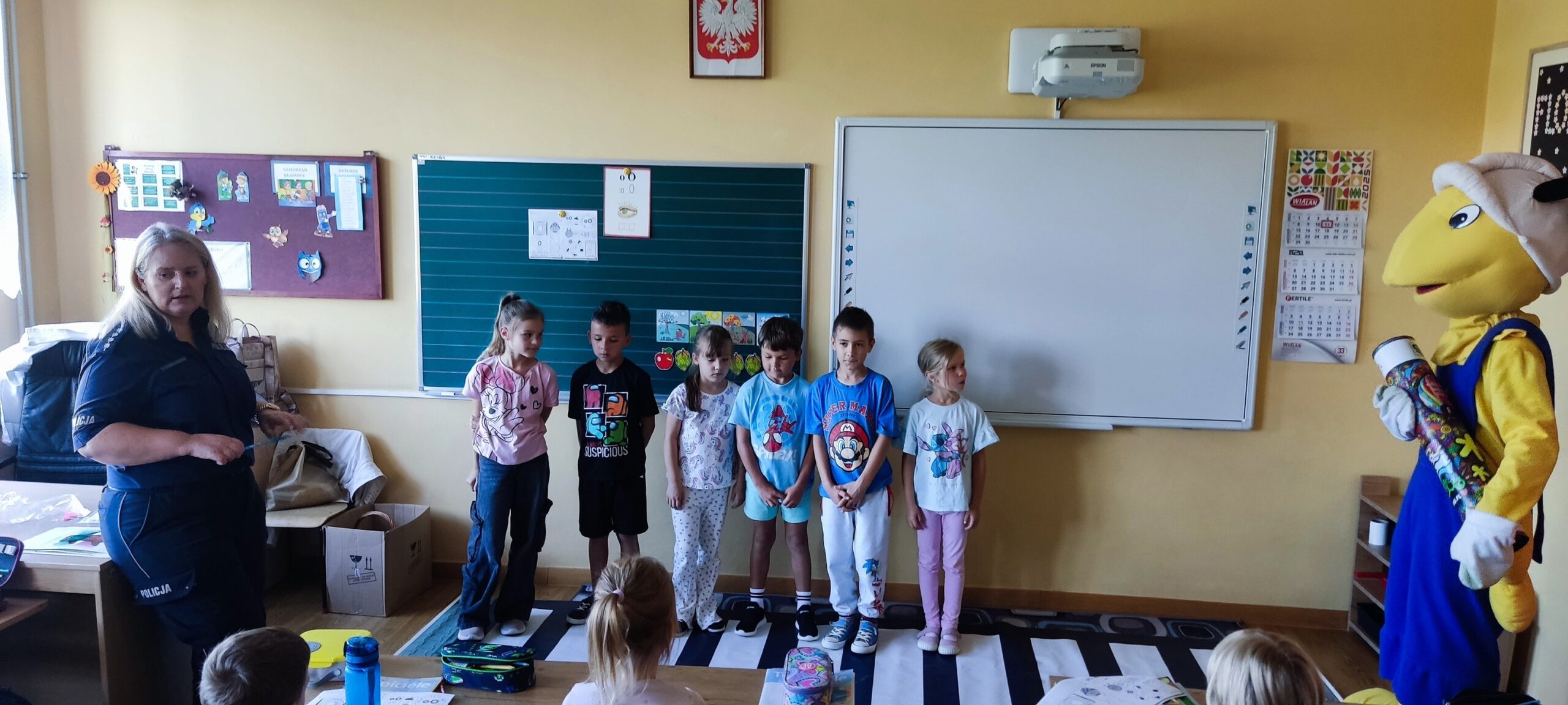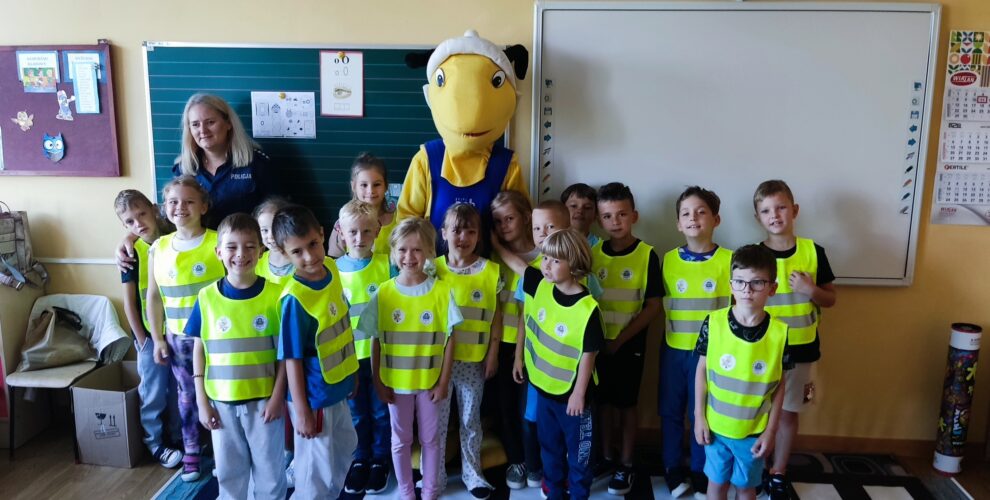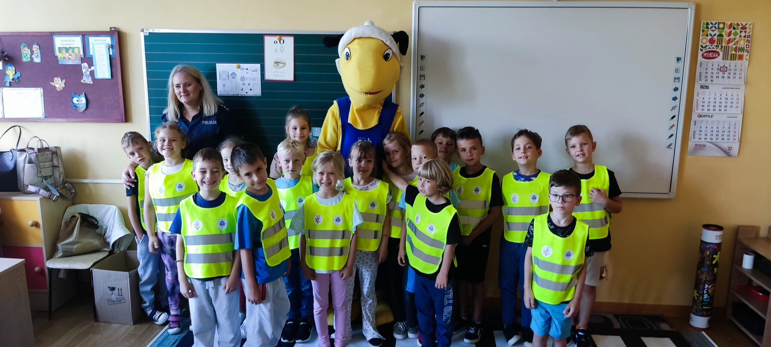 12 września 2025 roku w ramach realizacji ogólnopolskiej kampanii „Bezpieczna droga do szkoły” uczniowie klasy I spotkali się z funkcjonariuszami Komendy Miejskiej Policji w Tarnowie oraz PSB Mrówka. Celem spotkania było promowanie bezpieczeństwa uczniów na trasie do szkoły. Pierwszoklasiści z wielkim zaangażowaniem uczestniczyli w zajęciach, na których poznali zasady przechodzenia przez jezdnię oraz dowiedzieli się jak bezpiecznie poruszać się w drodze do i ze szkoły. Na zakończenie każdy uczeń otrzymał kamizelkę odblaskową.