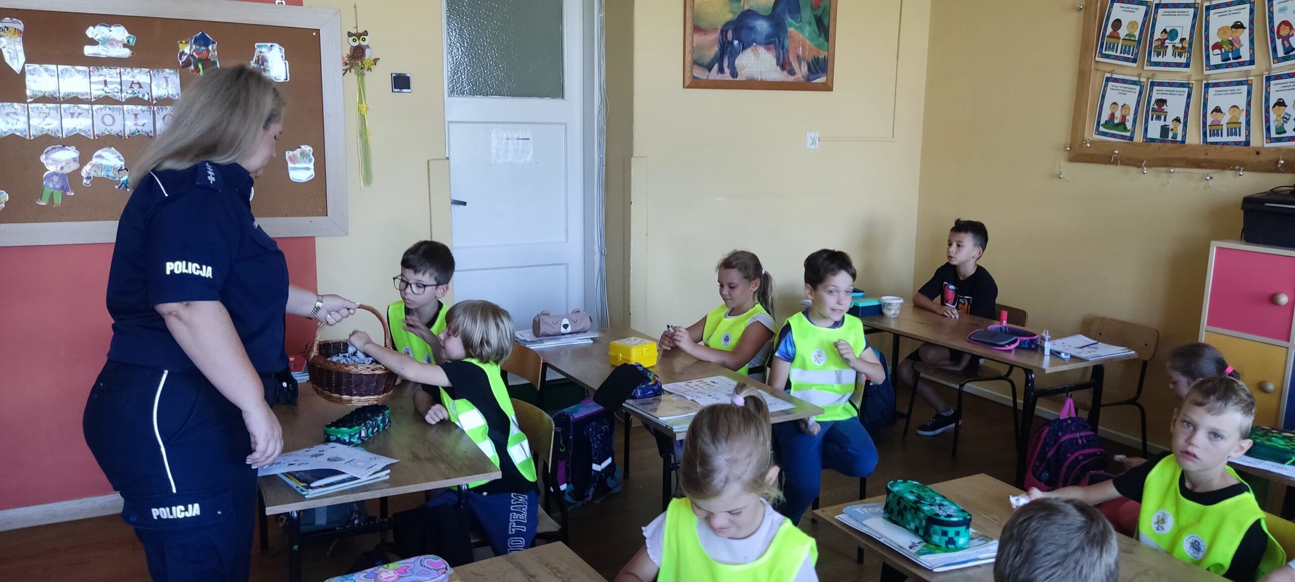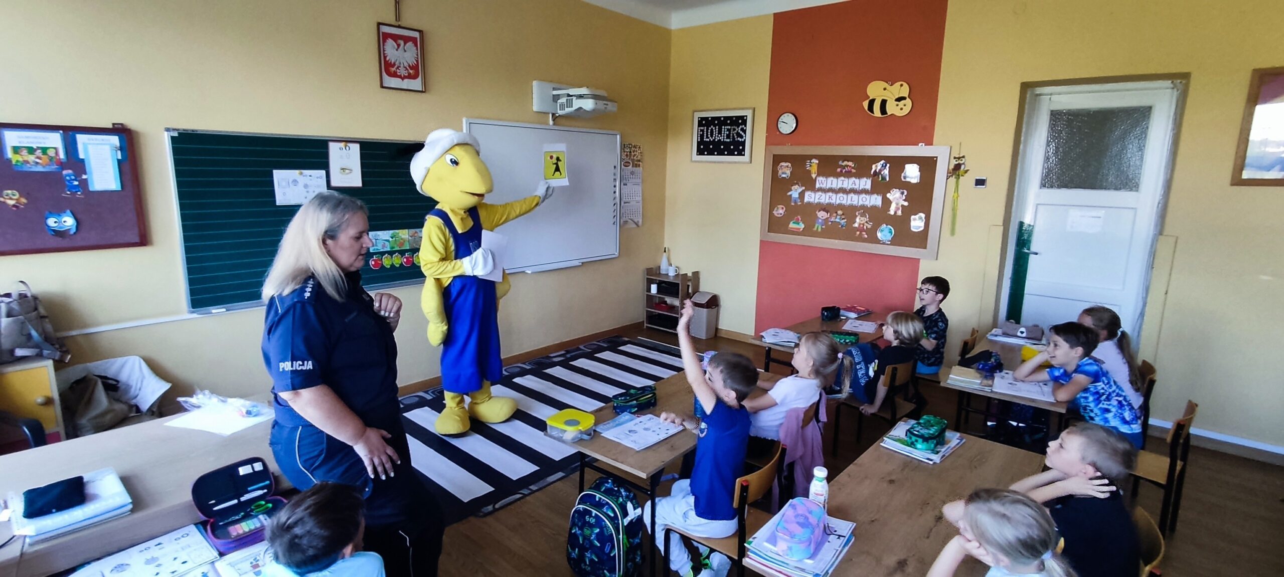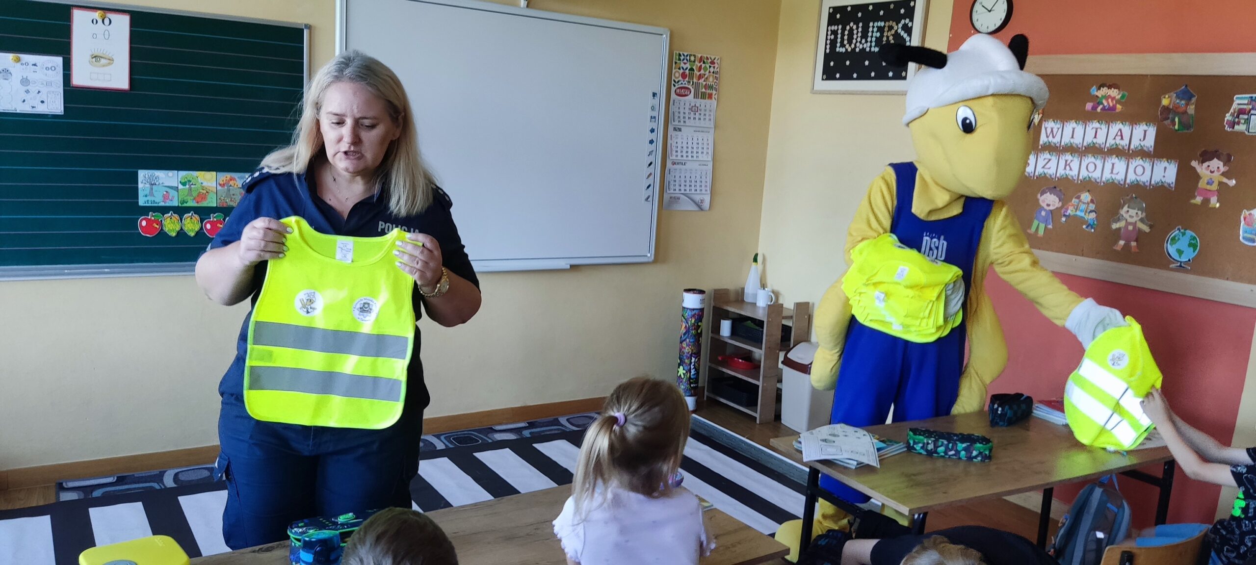 12 września 2025 roku w ramach realizacji ogólnopolskiej kampanii „Bezpieczna droga do szkoły” uczniowie klasy I spotkali się z funkcjonariuszami Komendy Miejskiej Policji w Tarnowie oraz PSB Mrówka. Celem spotkania było promowanie bezpieczeństwa uczniów na trasie do szkoły. Pierwszoklasiści z wielkim zaangażowaniem uczestniczyli w zajęciach, na których poznali zasady przechodzenia przez jezdnię oraz dowiedzieli się jak bezpiecznie poruszać się w drodze do i ze szkoły. Na zakończenie każdy uczeń otrzymał kamizelkę odblaskową.
