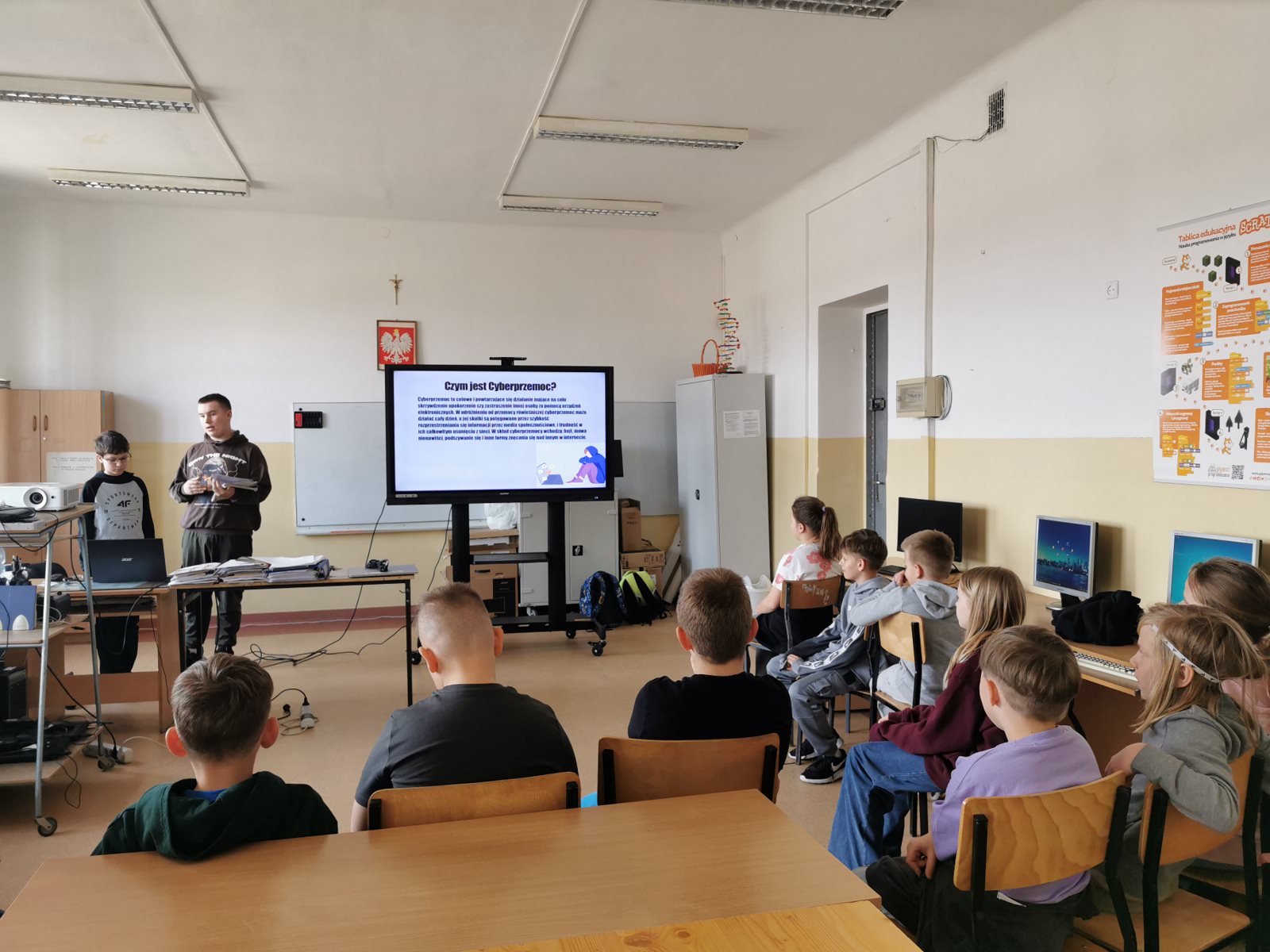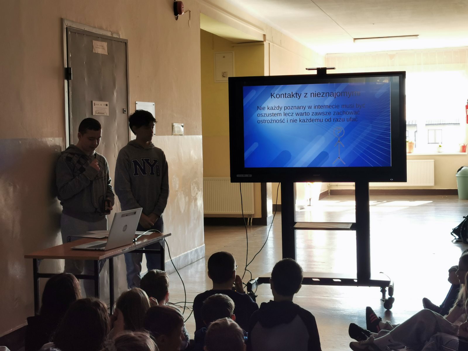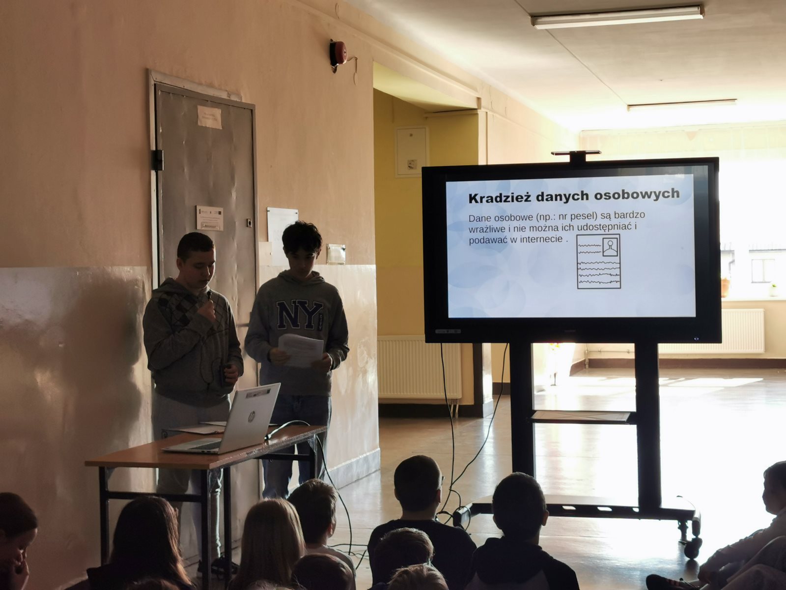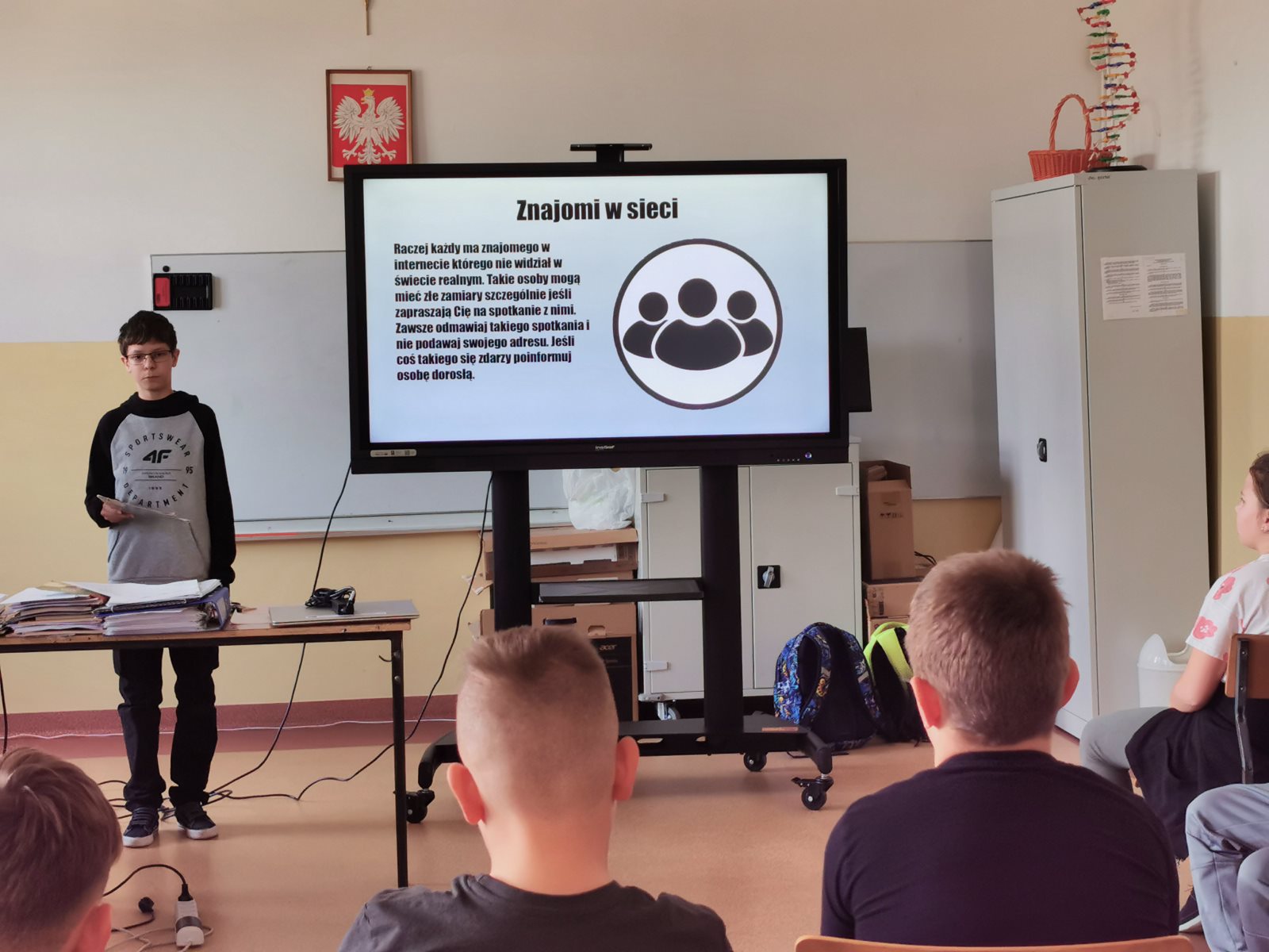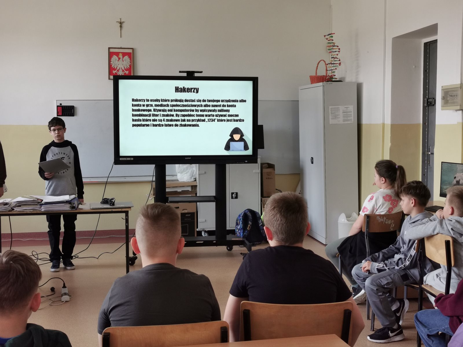 Temat bezpieczeństwa w sieci wzięli na warsztat uczniowie klasy VII, którzy w ramach zajęć kreatywnych z informatyki przygotowali serię profesjonalnych prezentacji dla swoich młodszych i starszych kolegów.