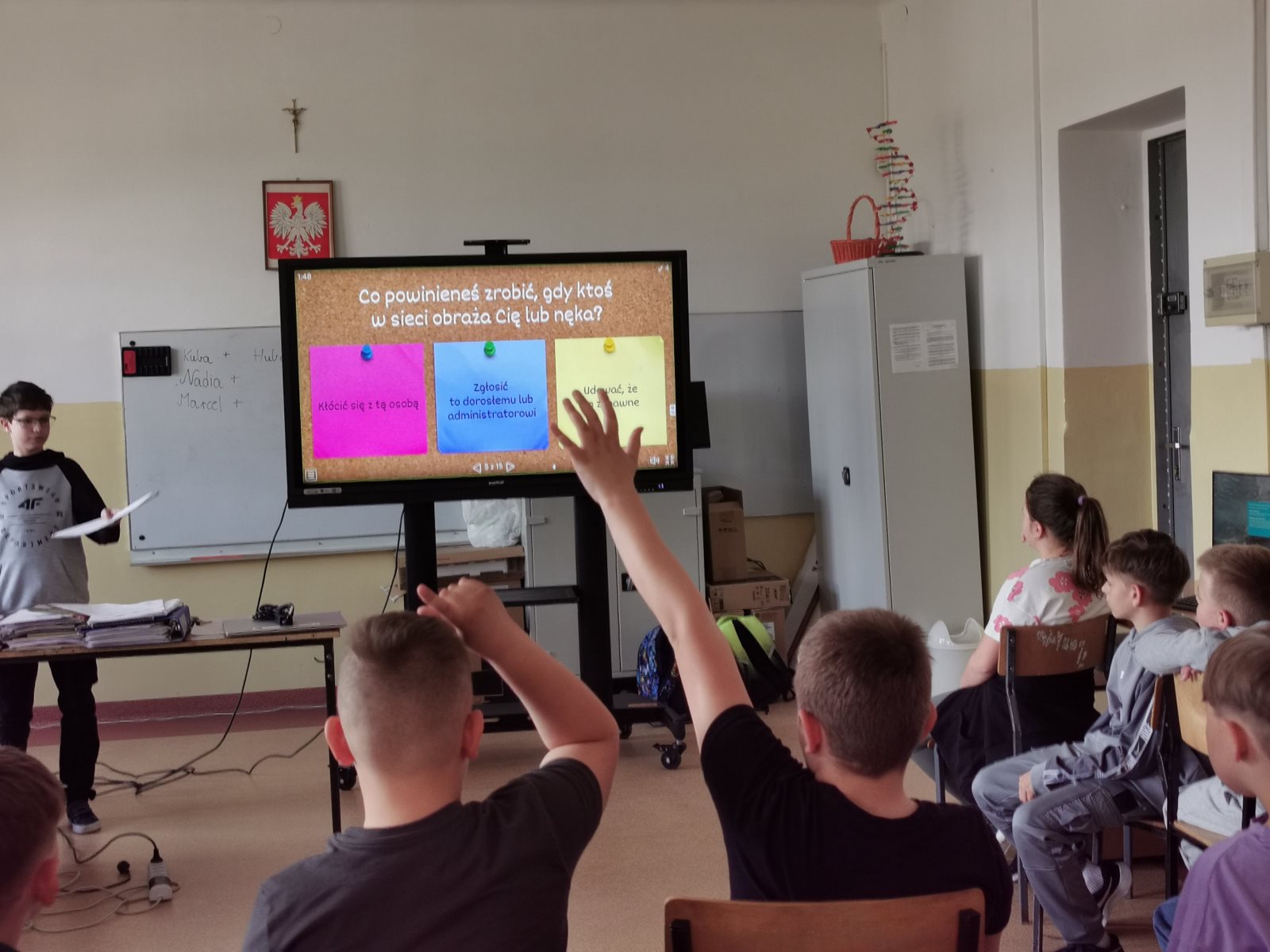 Dla najmłodszych siódmoklasiści przygotowali interaktywny quiz. Uczniowie klas I-III wykazali się ogromną czujnością i udowodnili, że zasady bezpiecznego surfowania w sieci mają opanowane do perfekcji. Brawo! 👏✨
