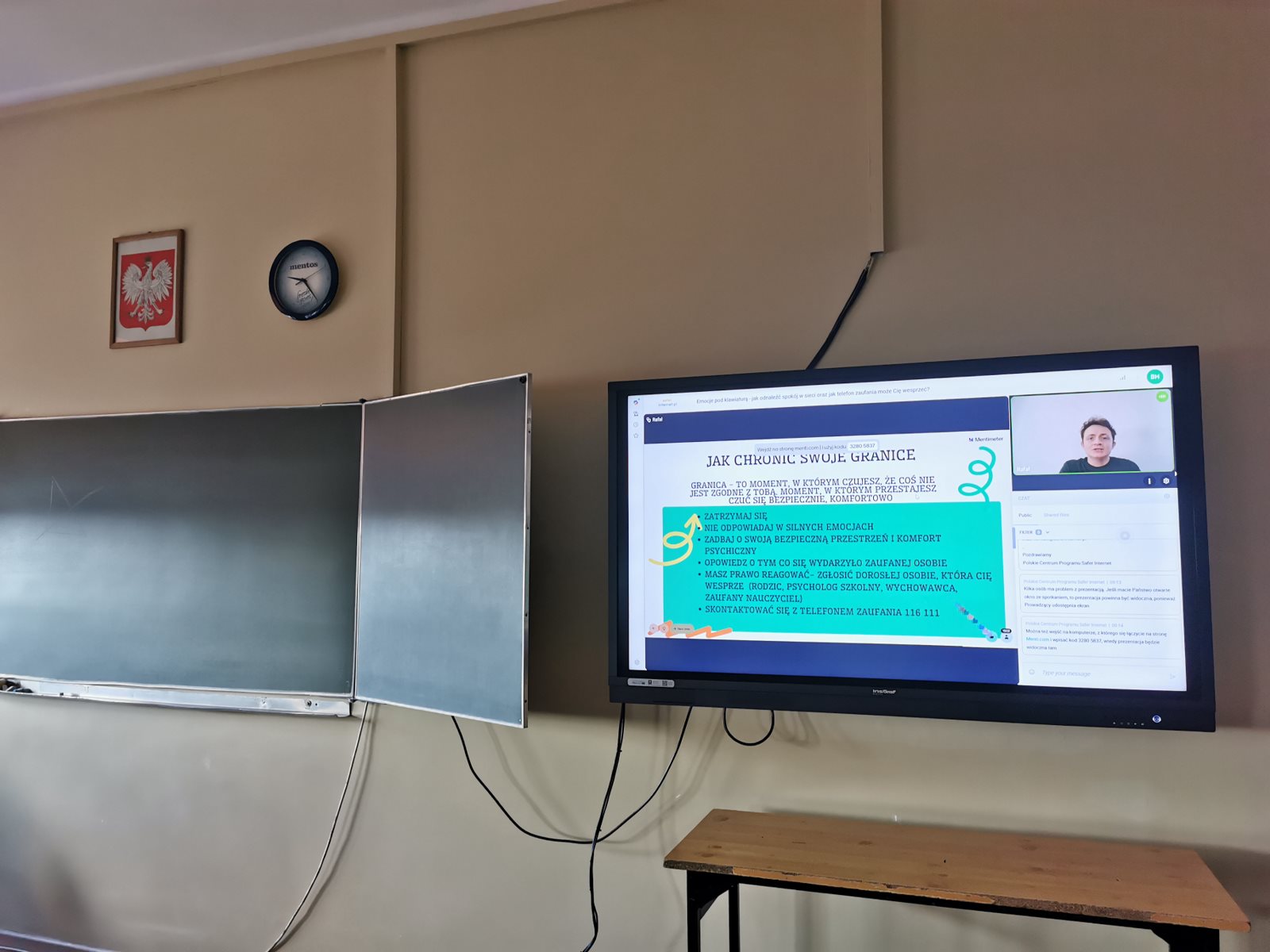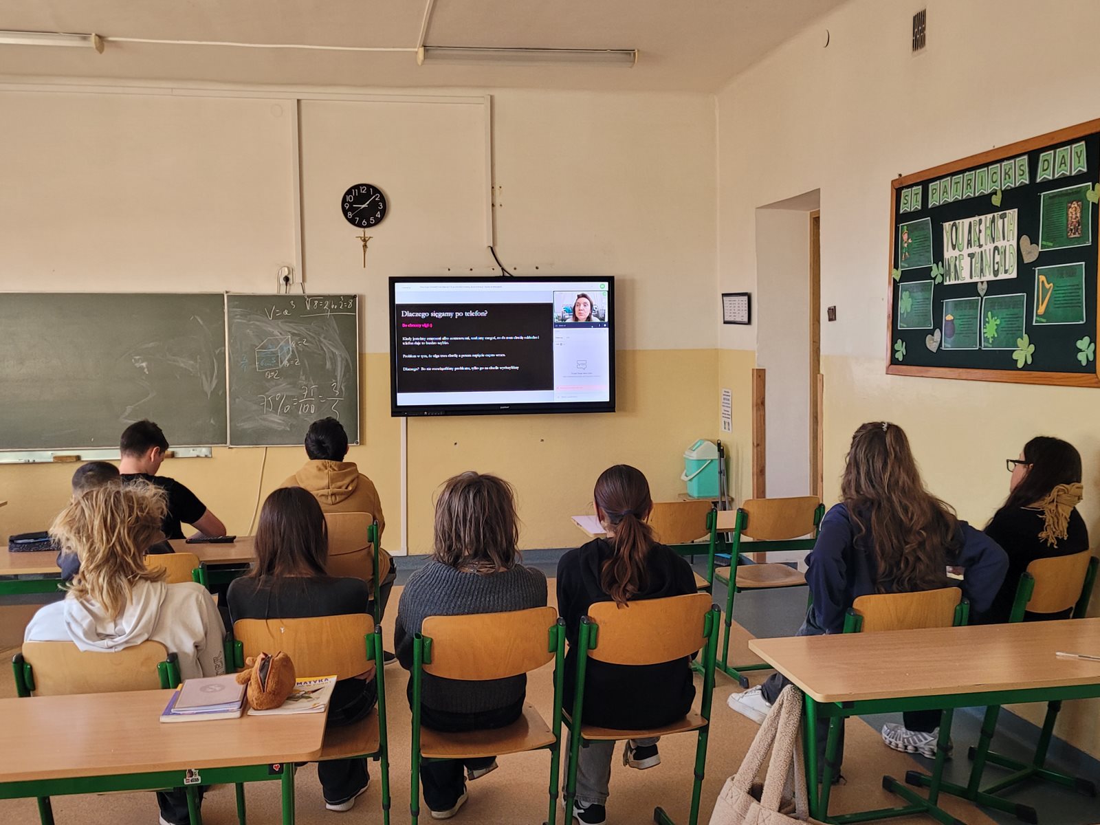 • Klasa VIII uczestniczyła w lekcji „Dlaczego internet nas męczy? O przebodźcowaniu, koncentracji i byciu w relacjach”. Uczniowie dowiedzieli się, jak długie przebywanie w internecie, media społecznościowe i ciągły napływ bodźców wpływają na naszą koncentrację, emocje i relacje z innymi.