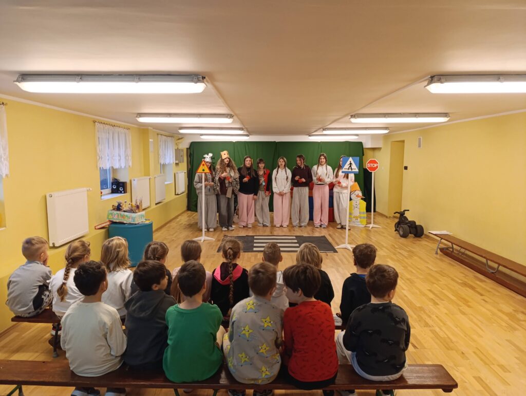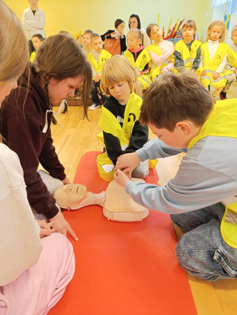 Pierwszoklasiści poznają zasady bezpieczeństwa w ruchu drogowym oraz pierwszą pomoc