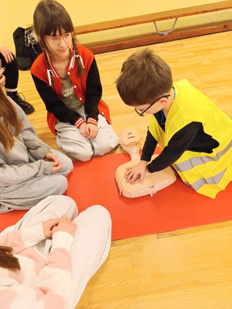 Uczniowie klasy 3b udzielają pierwszej pomocy