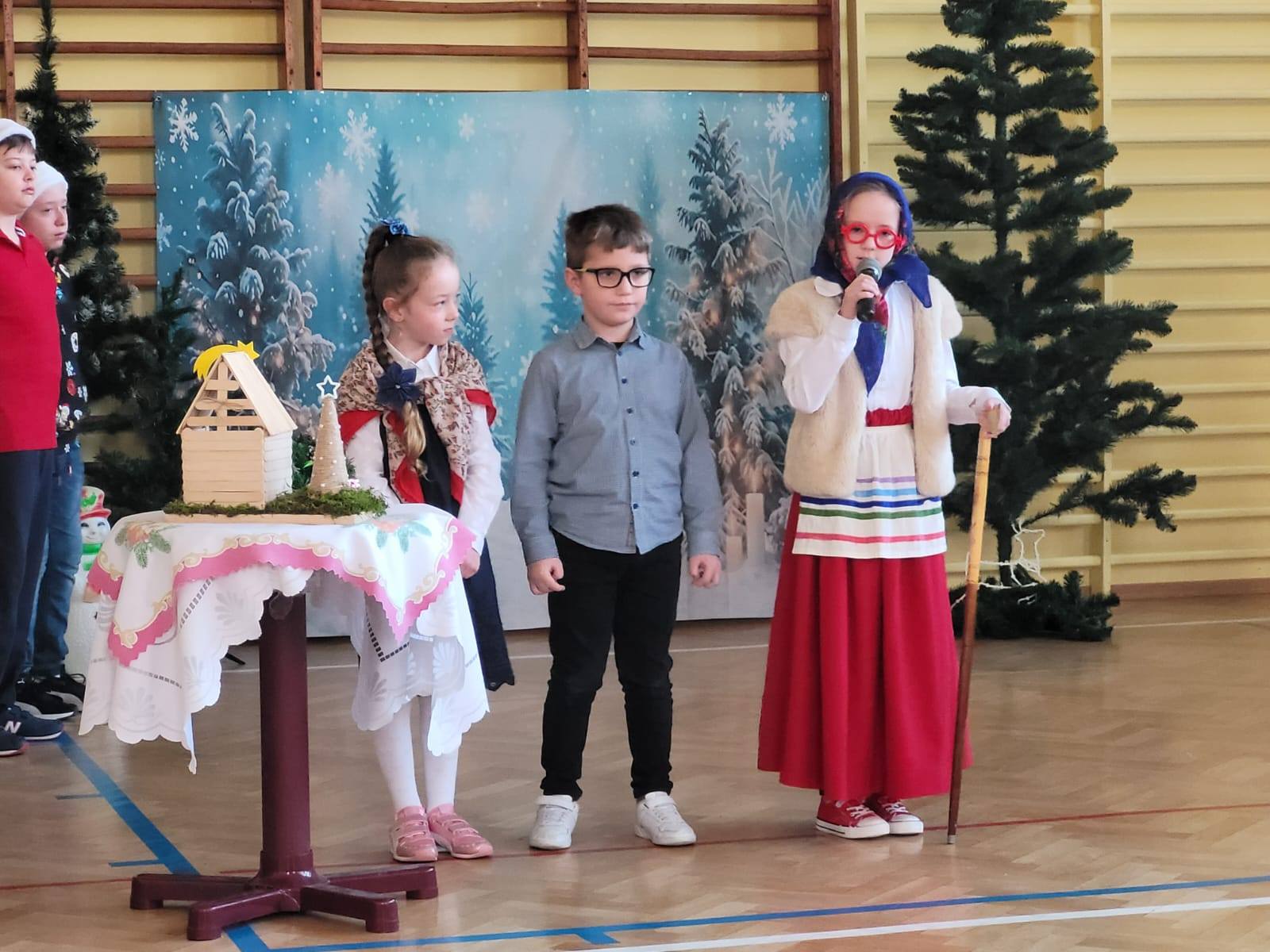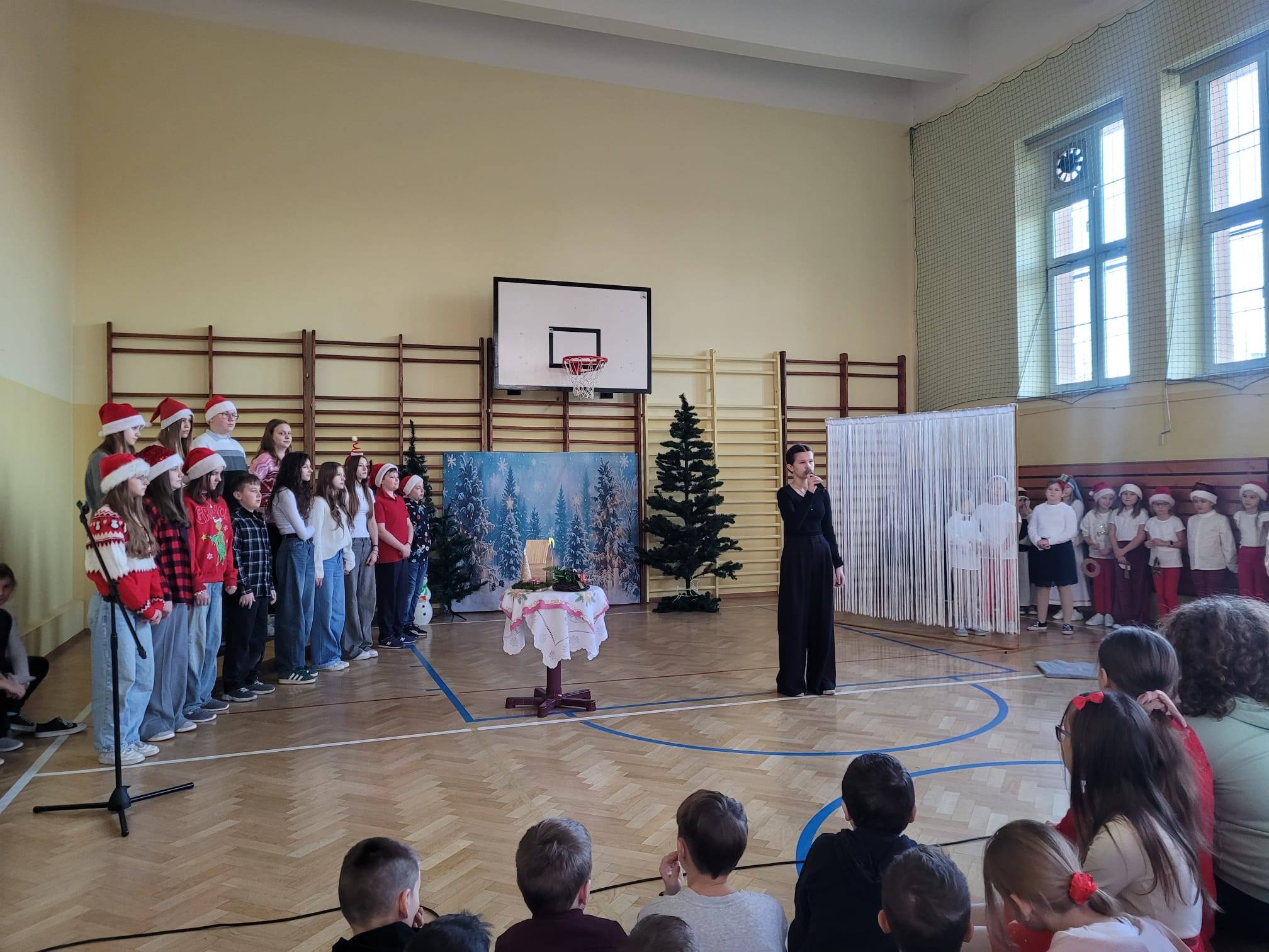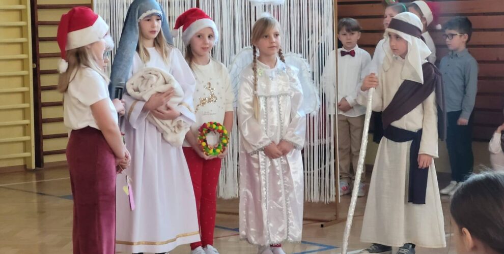 W przedświątecznej atmosferze nasi uczniowie zaprezentowali przepiękną opowieść o Bożym Narodzeniu, przygotowaną przez nauczycieli świetlicy. Jasełka zachwyciły nastrojowymi scenkami, radosnymi piosenkami, tanecznymi układami oraz pełnymi energii świątecznymi aranżacjami ruchowo-gimnastycznymi, które dodały całemu widowisku lekkości i dziecięcej radości. Całość stworzyła barwną, ciepłą mozaikę emocji, wprowadzając widzów w prawdziwie bożonarodzeniowy nastrój.