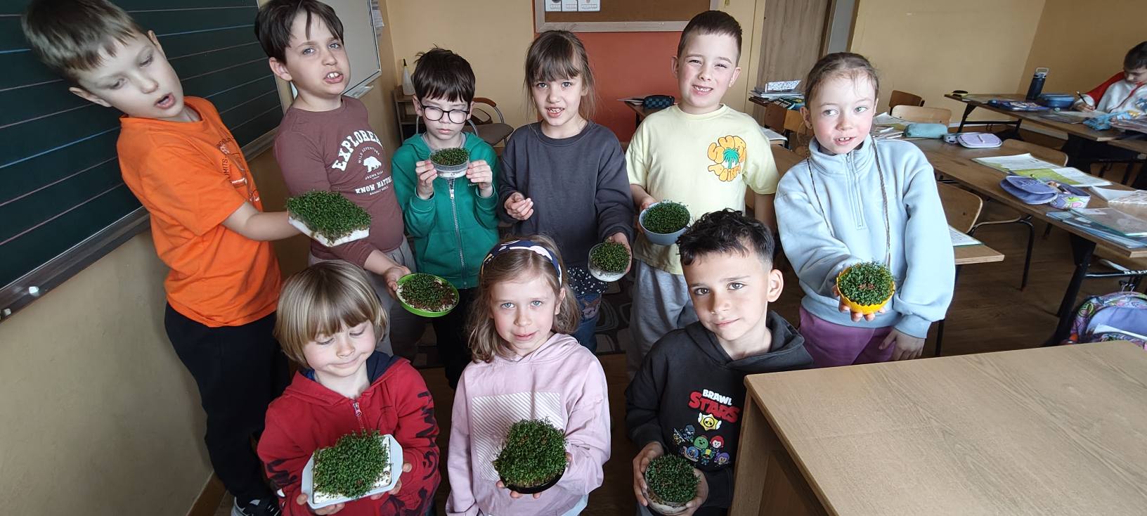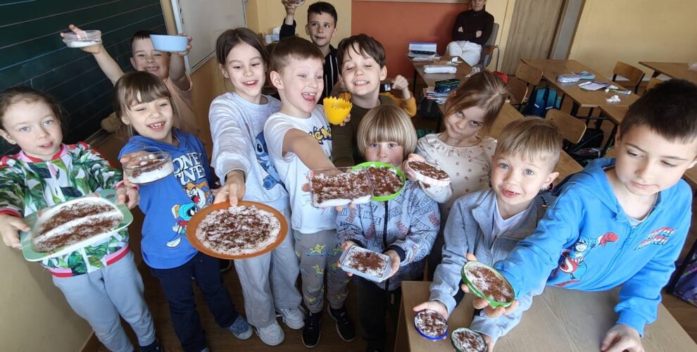 Do tej pory dzieci przygotowały zdrowe kanapki, uczestniczyły w zajęciach fitness na lekcji wychowania fizycznego, siały rzeżuchę oraz brały udział w zabawach ruchowych na świeżym powietrzu.