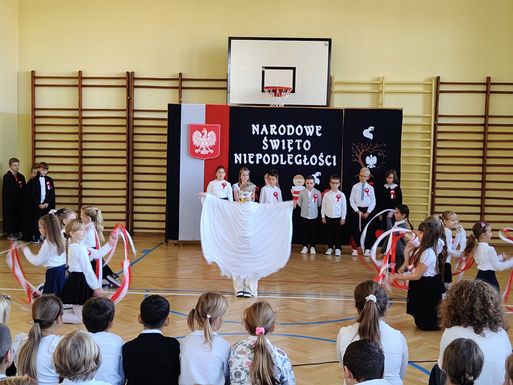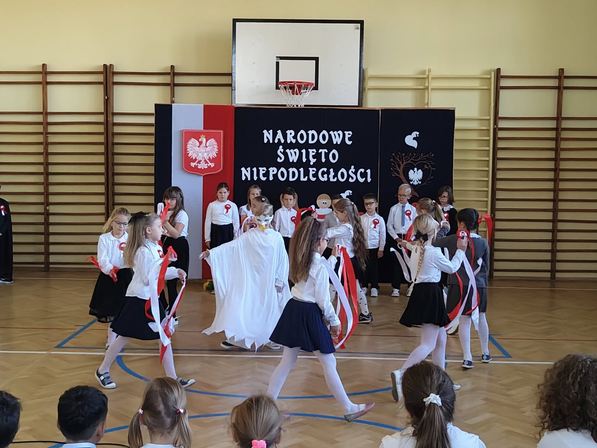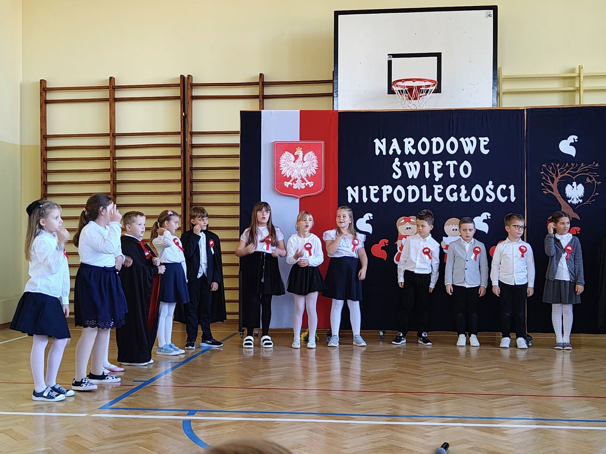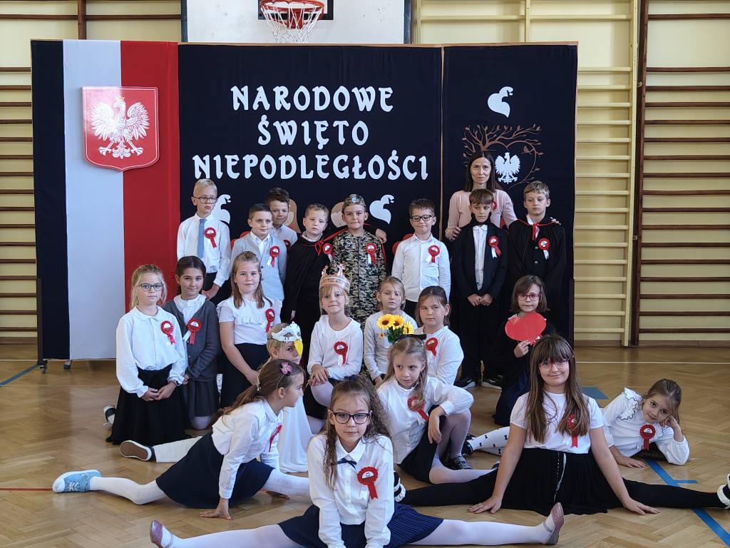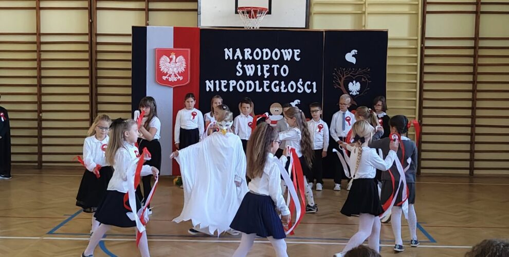 W dniu 7 listopada 2025 r. w naszej szkole odbyła się uroczysta akademia z okazji Narodowego Święta Niepodległości. Uczniowie klasy II, pod czujnym okiem pani Katarzyny Słyk i pani Alicji Sowy przedstawili program artystyczny. Scenariusz obejmował treści historyczne, wiersze i pieśni patriotyczne. W przystępny i obrazowy sposób przedstawiono losy naszej Ojczyzny. Zwieńczeniem tego uroczystego apelu był przepiękny taniec w wykonaniu drugoklasistów.