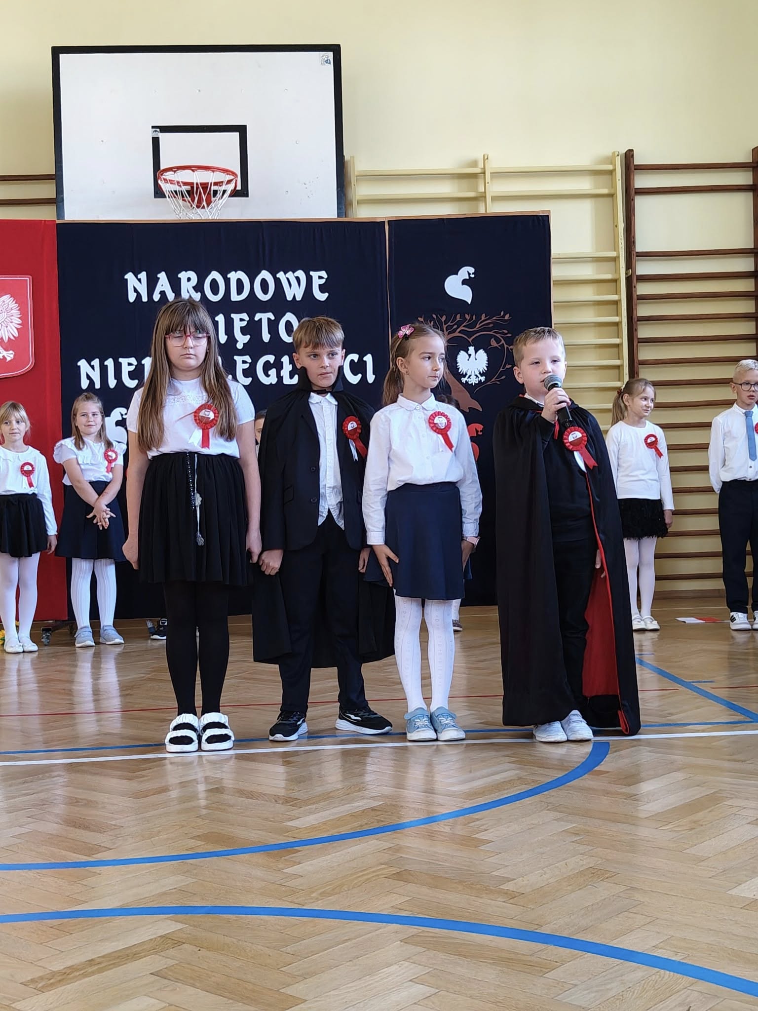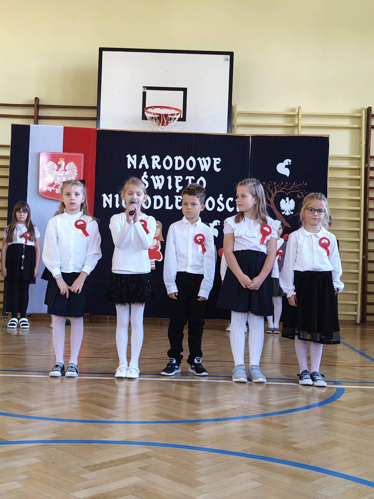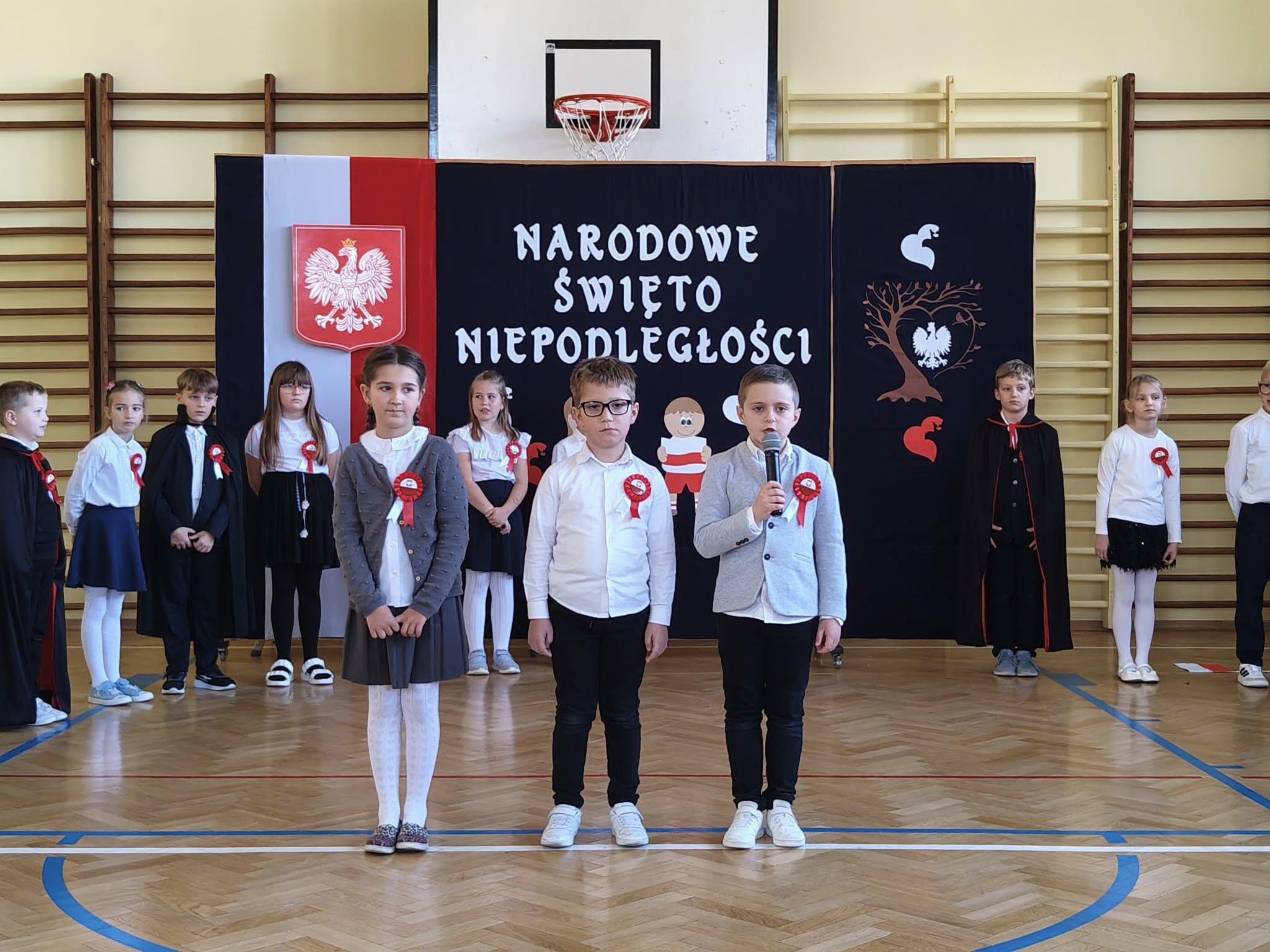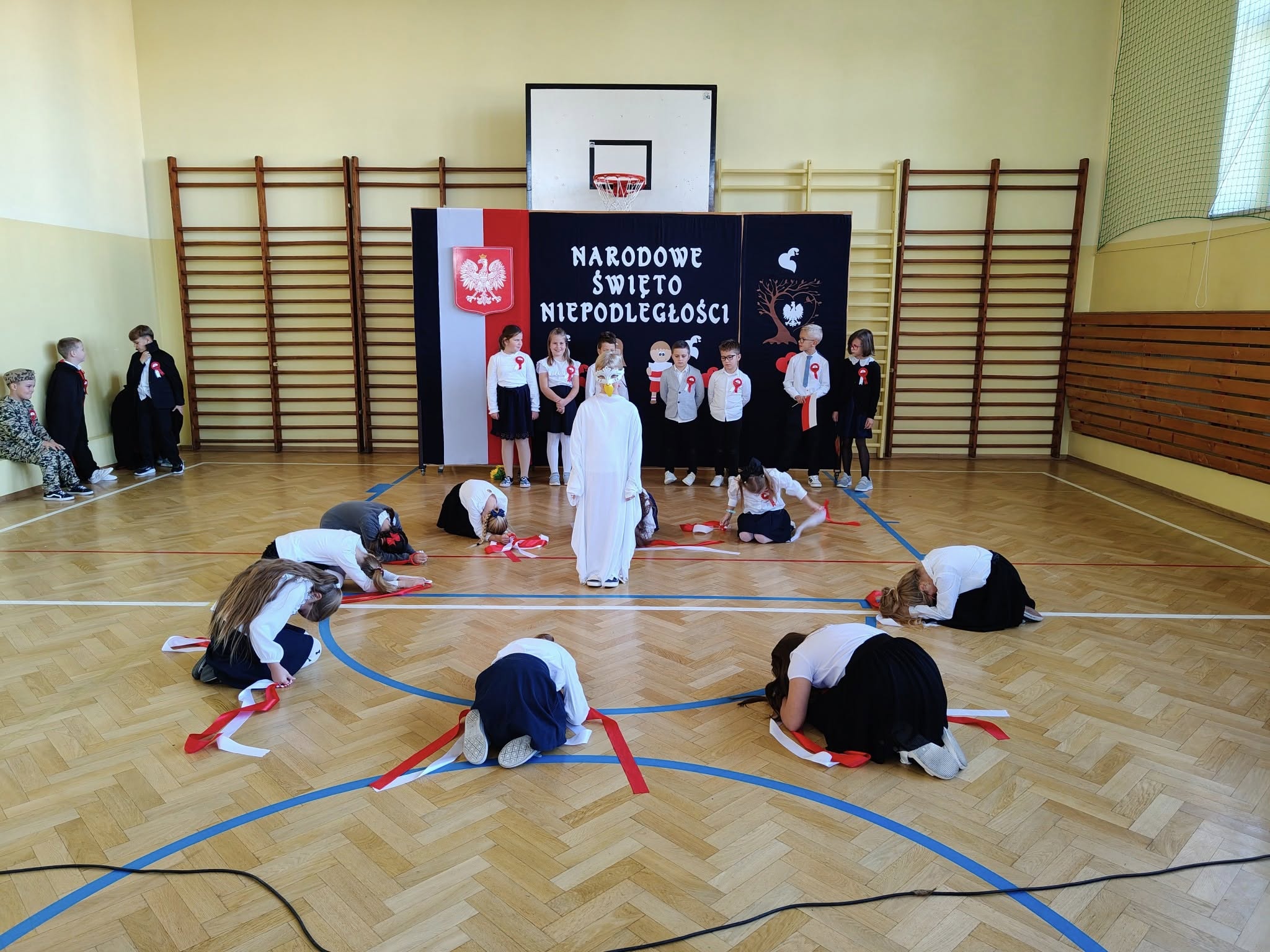 W dniu 7 listopada 2025 r. w naszej szkole odbyła się uroczysta akademia z okazji Narodowego Święta Niepodległości. Uczniowie klasy II, pod czujnym okiem pani Katarzyny Słyk i pani Alicji Sowy przedstawili program artystyczny. Scenariusz obejmował treści historyczne, wiersze i pieśni patriotyczne. W przystępny i obrazowy sposób przedstawiono losy naszej Ojczyzny. Zwieńczeniem tego uroczystego apelu był przepiękny taniec w wykonaniu drugoklasistów.