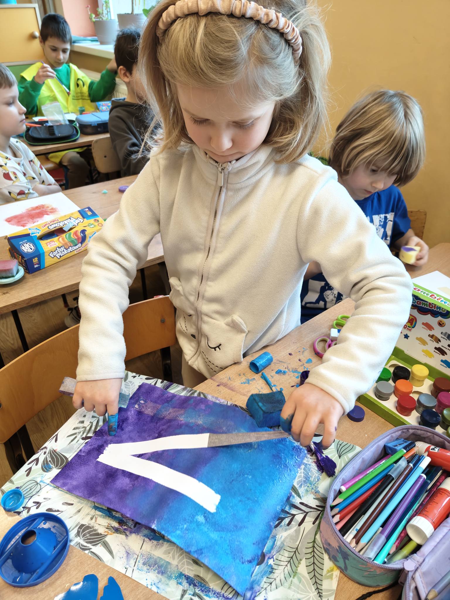 Dzieci brały udział w aktywnościach takich jak: „Kolorowa litera”, „Turlane samogłoski” oraz „Piankowa litera”