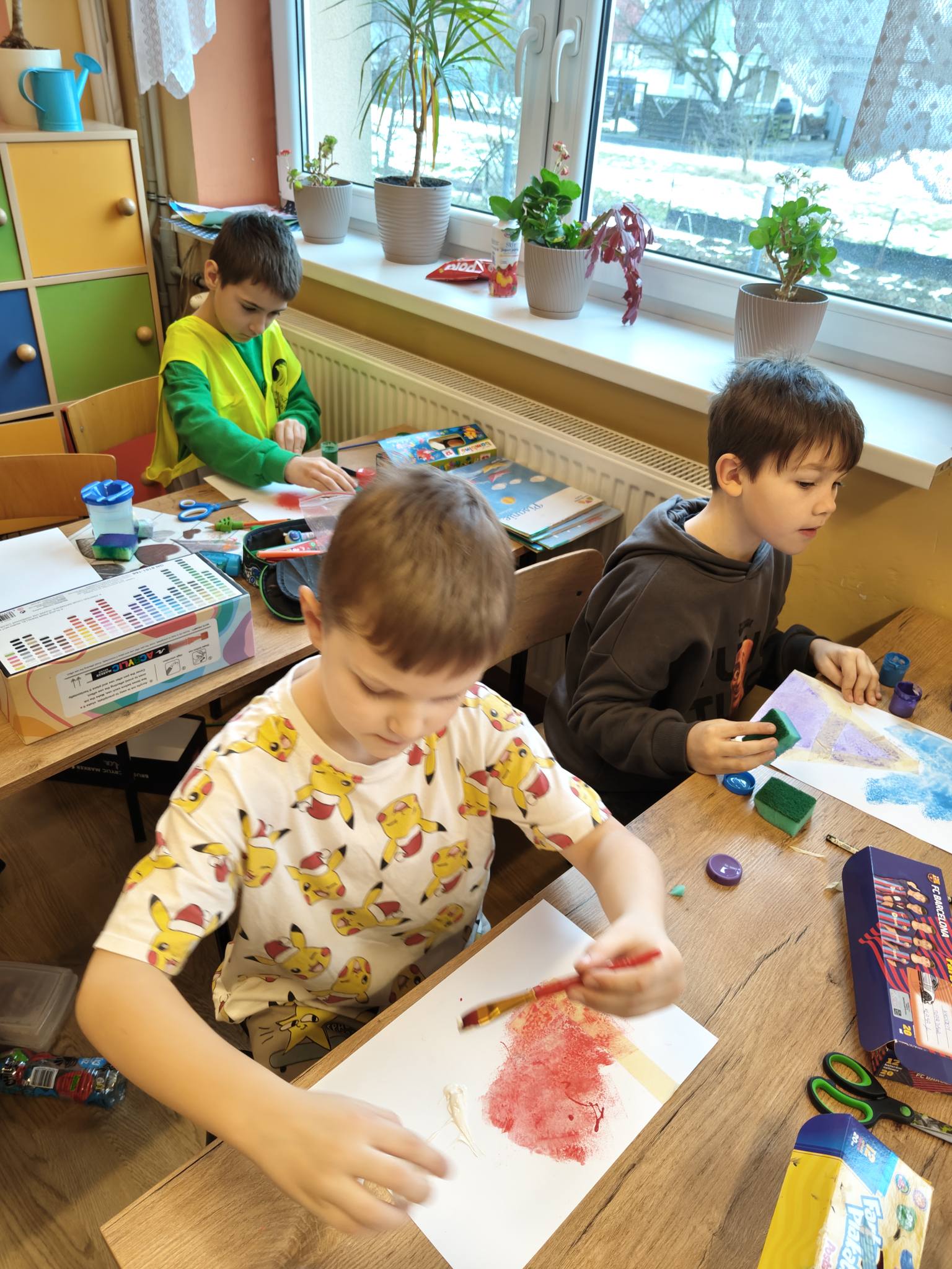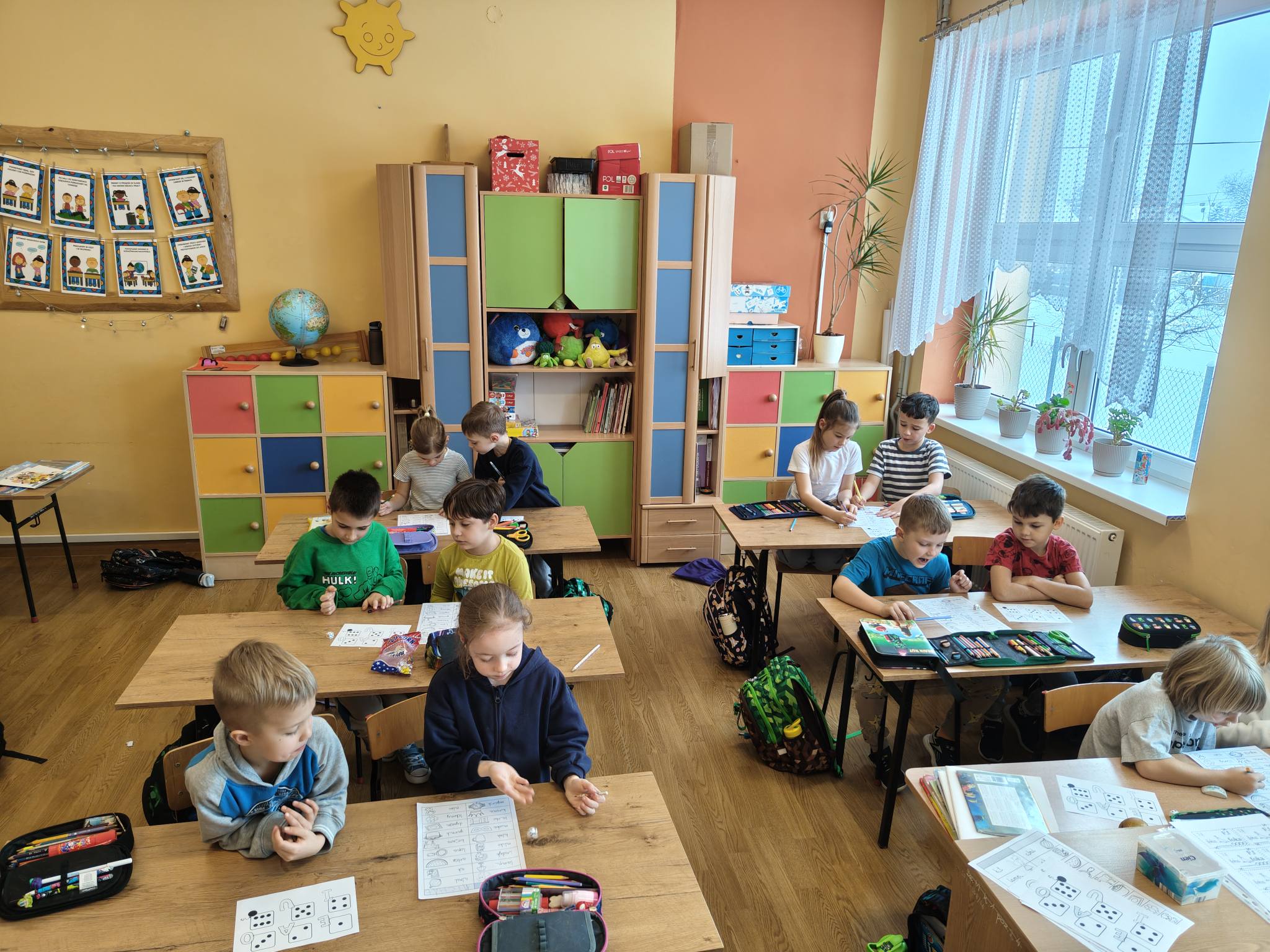 W ramach realizacji innowacji pedagogicznej „Literki w akcji” uczniowie klasy pierwszej z zaangażowaniem wykonywali zadania z sesji zimowej.